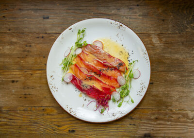 Nasze menu to hołd dla polskiej tradycji kulinarnej, podanej w nowoczesny sposób. Co trzy miesiące zmieniamy naszą kartę, by w pełni korzystać z darów natury i sezonowych składników.